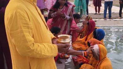 चैत्र छठ पूजा अस्ताचलगामी सूर्य को अर्ध्य अर्पित कर सरस्वती...