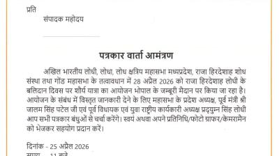 भोपाल में 25 अप्रैल को पत्रकार वार्ता, 28 अप्रैल को...