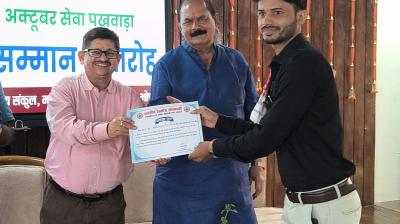 सेवा पखवाड़ा अभियान में उत्कृष्ट कार्य हेतु बीरबल परमार सम्मानित