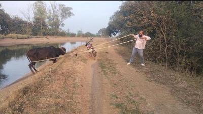 रहटगांव में मानवता की मिसाल: बाबू ठाकुर ने नहर में तैर रही गौ माता को बचाया