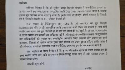 कांग्रेस नेता के जाति प्रमाण-पत्र पर सवाल! छानबीन समिति में शिकायत
