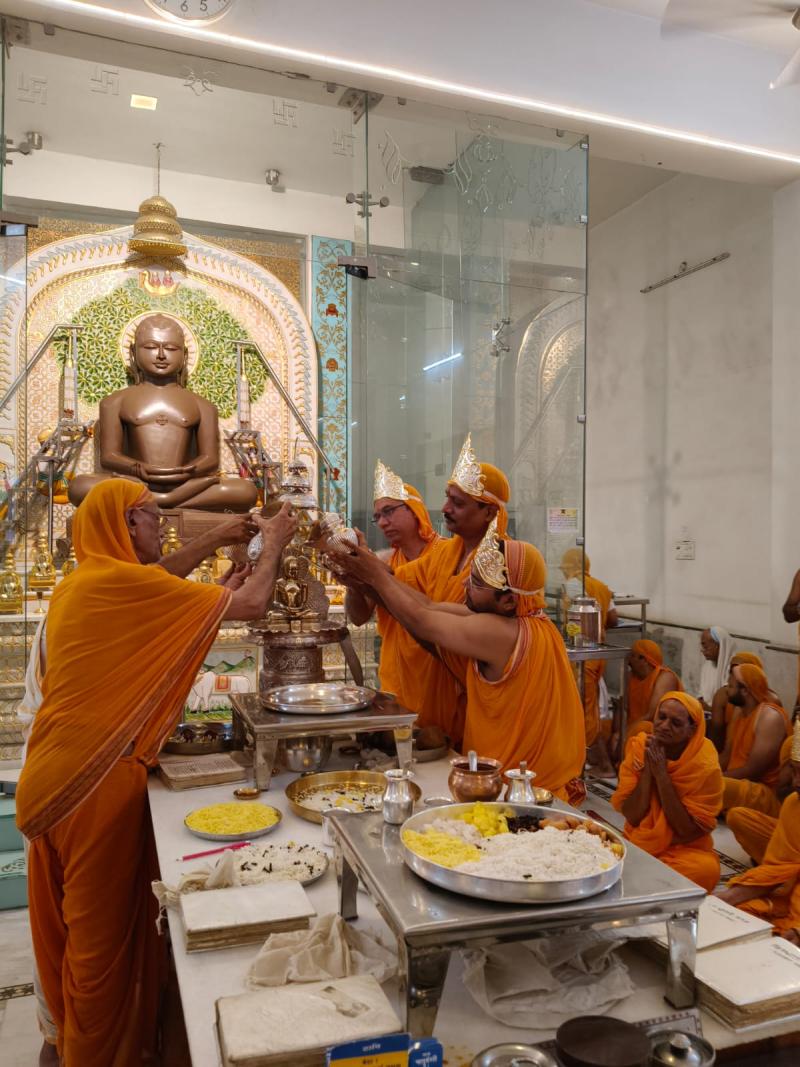 ज्ञातव्य है कि साकेत नगर जैन मंदिर जी में पर्युषण के अवसर पर बाहर से पढ़ने आये विद्यार्थियों, कामकाजी पुरूष/महिलाओं/बुजुर्गों सहित सभी साधर्मी बंधुओं जिन्हें पर्व के दौरान शुद्ध भोजन प्राप्ति हेतु तकलीफ होती है, को ध्यान में रखते हुए इस वर्ष भी 50/- की टोकन राशि पर सुबह 10:30 से 1 बजे तक एवं सांयकाल 5 बजे से 6:30 बजे तक शुद्ध भोजन उपलब्ध कराने का संकल्प लिया गया है। मंदिर जी की भोजन शाला में आज भी 250 से अधिक लोगों ने शुद्ध भोजन का आनंद लिया। नरेंद्र टोंग्या, शरद जैन, अमिताभ मन्या, सुनील जैन NHDC आदि द्वारा अपने हाथों से भोजन परोस कर खिलाया जा रहा है, इसके साथ ही समाज सेवा की तरफ एक और कदम आगे बढ़ाते हुए, समाज के वृद्धजन जो कि मंदिर आने-जाने में सक्षम नहीं हैं के लिए मंदिर अध्यक्ष नरेंद्र टोंग्या ने अपनी तरफ से वाहन की व्यवस्था भी की है।