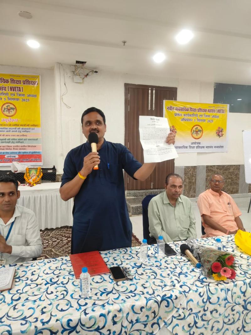 आज मध्यप्रदेश को राजधानी भोपाल में नवीन व्यावसायिक शिक्षा प्रशिक्षक महासंघ (NVETA) का प्रांतीय कार्यकारणी एवं जिला अध्यक्ष अधिवेशन सम्पन्न हुआ। जिसमें प्रांतीय कार्यकारणी के समस्त सदस्य सहित समस्त जिला अध्यक्ष सम्मिलित हुए एवं प्रमुख सुझाव साझा कर संघ की आगामी रणनीति तय की।