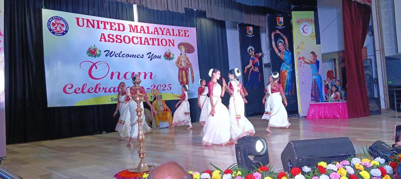 नाट्यश्री नृत्य मंडली ने एकता और विविधता की थीम पर एक शक्तिशाली जुगलबंदी पेश करने के लिए मंच संभाला। उनका 'नृत्य संगमम' भरतनाट्यम, मोहिनीअट्टम, कुचिपुड़ी और लोक नृत्य का एक सुंदर संलयन था, जिसमें ऊर्जावान कोरियोग्राफी थी जिसने वास्तव में ओणम की भावना को जीवंत कर दिया। भीड़ ने सुश्री तनिष्का को गर्मजोशी से तालियां दीं, जिनके सुरुचिपूर्ण एकल प्रदर्शन ने शाम में और आकर्षण जोड़ा। कुल मिलाकर, 100 से अधिक प्रतिभागियों ने सांस्कृतिक खंड के दौरान प्रदर्शन किया, जो अपनी कलात्मक विरासत को संरक्षित करने के लिए समुदाय के समर्पण का एक वसीयतनामा है।