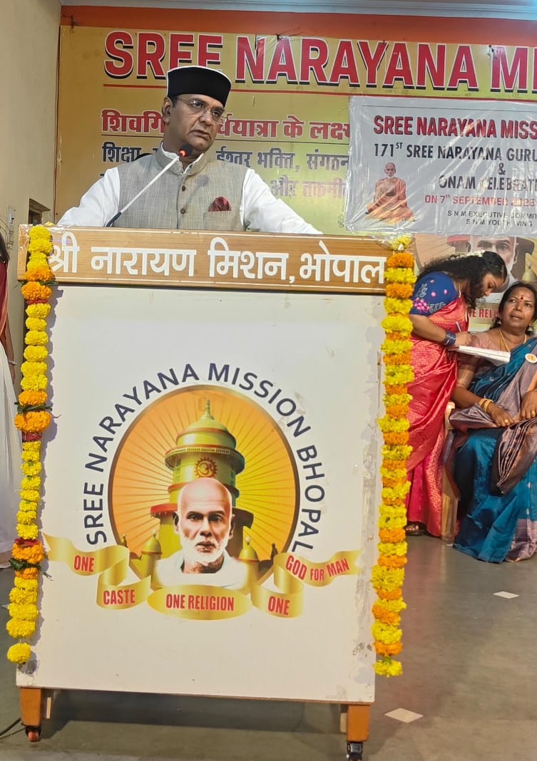 श्री नारायण मिशन, गोविंदपुरा, भोपाल में जगतगुरु श्री नारायण गुरु की 171वीं जयंती का भव्य आयोजन श्रद्धा और भक्ति के साथ सम्पन्न हुआ। कार्यक्रम का शुभारंभ गणपति होम, अभिषेकम, महा गणपति पूजा, शारदा पुष्पांजलि, ध्वजारोहण एवं एरिया प्रेयर ग्रुप द्वारा गुरु कीर्तन से हुआ।