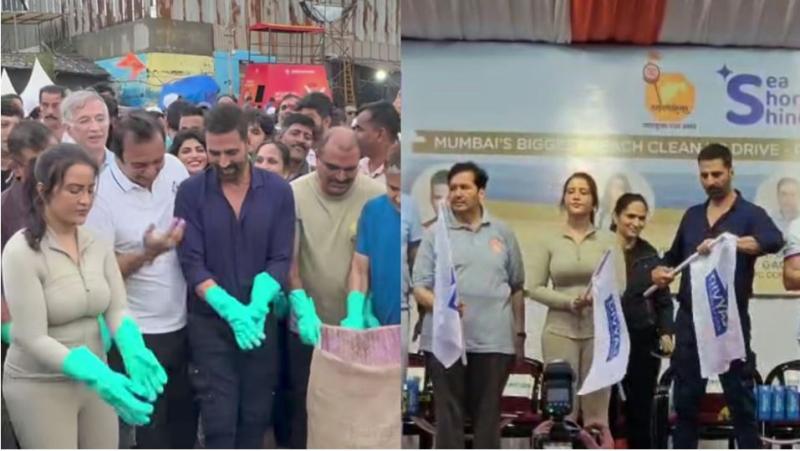 मुंबई के जुहू बीच पर सफाई अभियान में अक्षय कुमार के साथ दिखीं अमृता फडणवीस, कपड़ों को लेकर सोशल मीडिया पर मची हलचल