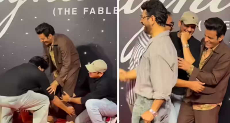 अनुराग कश्यप जैसे ही स्क्रीनिंग पर आए तो तुरंत ही मनोज बाजपेयी के पैरों में गिर गए। उनके पैर छू कर आशीर्वाद लेने लगे। अनुराग के साथ ही जयदीप अहलावत, विनीत कुमार और विजय वर्मा भी मनोज के पैर छूने लगे। सभी एक साथ मनोज का आशीर्वाद मांगते दिखे। यह देखकर मनोज मुस्कुराने लगे और सभी को ऐसा करने से मना करते दिखे। बाद में सभी ने मिलकर फाेटो क्लिक करवाए।