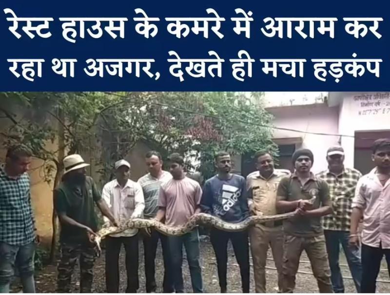 रेस्ट हाउस में घुसा विशाल अजगर: शिकार की तलाश में मचाया हड़कंप, रेस्क्यू के बाद दिखा भयावह रूप, उठाने में लगे दो लोग