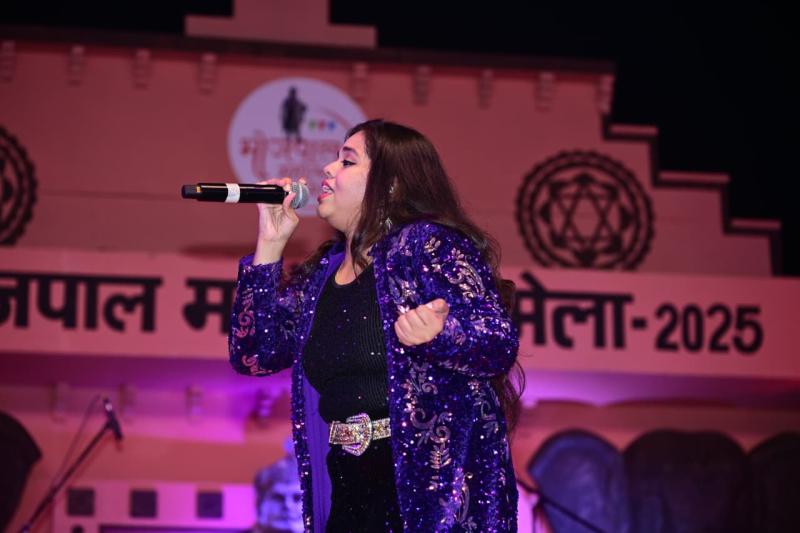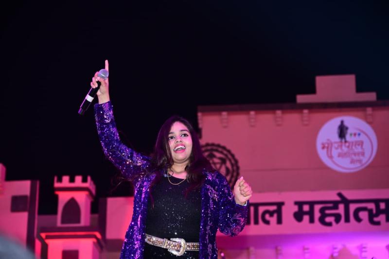 भोपाल. राजा भोज की नगरी भोपाल के भेल दशहरा मैदान पर चल रहे प्रदेश के सबसे बड़े भोजपाल महोत्सव मेला के सांस्कृतिक मंच पर रविवार को बॉलीवुड नाइट में इंडियल आइडल फेम- 12 शनमुख प्रिया ने अपनी प्रस्तुति से जमकर धमाल मचाया। शनमुख प्रिया ने भगवान गणेश स्तुति से अपने गीतों की शुुरुआत की, इसके बाद दिल से रे दिल से आहा निकली, रूप तेरा मस्ताना भूल कोई हम से हो जाए, मुझको इतना बता दे रब्बा, केसरिया तेरा इश्क हे पिया, अच्छा चलता हूं दुआ में याद रखना जैसी एक से बढकऱ एक सुमधुर गीतों की प्रस्तुति से लोगों को थिरकने पर मजबूर कर दिया।