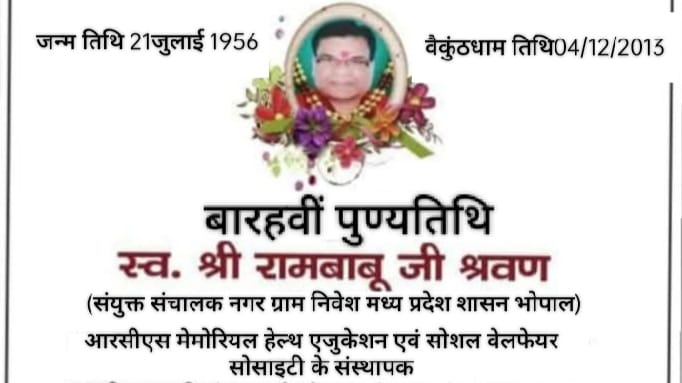 भोपाल। सामाजिक शिक्षा के क्षेत्र में महत्वपूर्ण योगदान देने वाले और शहर के प्रसिद्ध समाजसेवी स्वर्गीय श्री रामबाबू श्रवण जी की 12वीं पुण्यतिथि के अवसर पर श्रद्धांजलि कार्यक्रम का आयोजन किया जा रहा है। यह कार्यक्रम 4 दिसंबर 2025 को आसारा वृद्ध आश्रम, बाबे अली ग्राउंड, नियर गोलघर, भोपाल में रखा गया है।