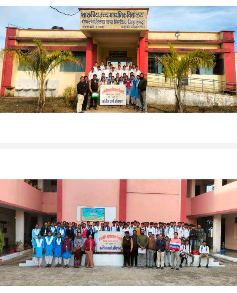 प्राचार्य डॉ. हीरा शाह के मार्गदर्शन में गठित कॉलेज चलो अभियान टीम के संयोजक डॉ. जगदीश कहोले प्रभारी डॉ. श्यामसिंह पवार एवं डॉ. विष्णुनाथ कुबड़े सहित टीम सदस्यों ओ.पी. पटेल एवं महेश जाटव द्वारा तहसील सिराली क्षेत्र के विभिन्न शैक्षणिक संस्थानों में पहुँचकर अभियान संचालित किया गया अभियान के दौरान शासकीय कन्या उच्चतर माध्यमिक विद्यालय सिराली शासकीय बालक उच्चतर माध्यमिक विद्यालय सिराली राजमाता सीतारानी देवी शासकीय उच्चतर माध्यमिक विद्यालय खुदिया शासकीय उच्चतर माध्यमिक विद्यालय पीपलिया सनशाइन हायर सेकेंडरी स्कूल सिराली तथा सतपुड़ा वैली उच्चतर माध्यमिक विद्यालय सिराली में विद्यार्थियों से संवाद किया गया