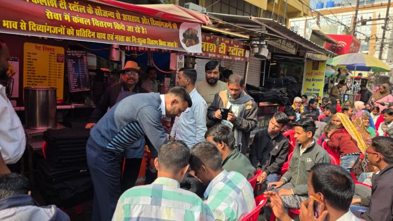 भोपाल। नव वर्ष 2026 के अवसर पर एमपी नगर जोन-2 स्थित कैलाश टी स्टाल के संचालक कैलाश मौर्य द्वारा समर्थानम फॉर द डिसएबल संस्था से जुड़े दिव्यांगजनों को कंबल वितरित किए गए। इस अवसर पर पूर्व पार्षद मोनू गोहिल विशेष रूप से उपस्थित रहे।