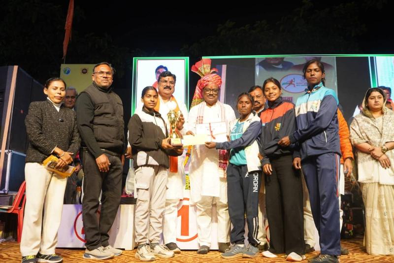हरदा / भारत सरकार के अनुसूचित जनजाति कार्य विभाग के केन्द्रीय राज्य मंत्री श्री दुर्गादास उईके ने सोमवार को नेहरू स्टेडियम में आयोजित कार्यक्रम में सांसद खेल महोत्सव के दौरान विभिन्न खेल विधाओं में उत्कृष्ट प्रदर्शन करने वाले जिले के खिलाड़ियों को प्रशस्ति पत्र प्रदान कर सम्मानित किया। इस अवसर पर नगर पालिका अध्यक्ष श्रीमती भारती राजू कमेड़िया, पूर्व कृषि मंत्री श्री कमल पटेल, जिला अध्यक्ष श्री राजेश वर्मा, नगर पालिका अध्यक्ष टिमरनी श्री देवेन्द्र भारद्वाज, पूर्व विधायक टिमरनी श्री संजय शाह, जिला पंचायत उपाध्यक्ष श्री दर्शन सिंह गहलोत, नगर पालिका उपाध्यक्ष श्री अंशुल गोयल जिला ओलम्पिक संघ के अध्यक्ष श्री संदीप पटेल सहित अन्य जनप्रतिनिधि व खिलाड़ी उपस्थित रहे।