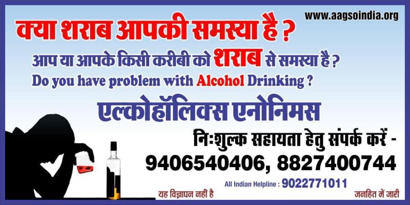 "क्या शराब आपकी समस्या है? क्या आपके किसी अपने को शराब से समस्या है? तो निःशुल्क सहायता प्राप्त करें।"