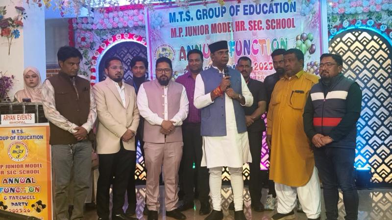 भोपाल। एम.टी.एस. ग्रुप की एजुकेशन संस्था द्वारा संचालित एम.पी. जूनियर मॉडल हायर सेकेंडरी स्कूल, कम्मू का बाग (80 फीट रोड, भोपाल) का 16वां सालाना वार्षिक उत्सव एवं विदाई समारोह–2026 होटल सी.एफ.सी., हमीदिया रोड (पंजाब बूट हाउस के पास) गरिमामय वातावरण में संपन्न हुआ।