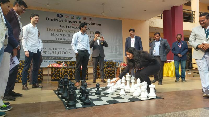 हरदा / जिला प्रशासन और खेल प्रेमियों के लिए आज का दिन उत्साह भरा रहा, जब जिला चेस एसोसिएशन के तत्वाधान में शनिवार को हरदा डिग्री कॉलेज में आयोजित ‘प्रथम हरदा ओपन इंटरनेशनल फिडे रैपिड रेटिंग शतरंज टूर्नामेंट’ में कलेक्टर श्री सिद्धार्थ जैन ने न केवल मुख्य अतिथि के रूप में शिरकत की, बल्कि स्वयं भी बिसात पर अपनी प्रतिभा दिखाई। इस टूर्नामेंट में भारत के विभिन्न राज्यों के अलावा श्रीलंका और फ्रांस जैसे देशों के विदेशी खिलाड़ियों और ग्रैंड मास्टर्स ने भी भाग लिया। यह एक फिडे रेटेड टूर्नामेंट है, जिसमें 9 राउंड के तहत रैपिड प्रारूप (15$5 समय नियंत्रण) में मुकाबले खेले गए। उद्घाटन सत्र में हरदा जिला के संरक्षक कलेक्टर श्री सिद्धार्थ जैन, मध्यप्रदेश चेस एडहॉक कमेटी के कन्वीनर अक्षत खम्पारिया, फ्रांस से श्री एंटोनी बोरनेल, श्रीलंका से सचिनी राणासिंघे, जिला चेस एसोसिएशन के अध्यक्ष श्री आलोक जैन, हरदा डिग्री कॉलेज के संचालक श्री गिरीश सिंहल, चीफ आर्बिटर श्रीहरि, उत्तर प्रदेश से श्री दिनेश कुमार शर्मा एवं श्री हरिओम शर्मा, गुजरात से श्री नैतिक मेहता व मध्यप्रदेश से श्री अश्विन डेनियल, श्री प्रखर बजाज, श्री एस.के. राठौर, राजस्थान से श्री अरुण कटारिया सहित कई खिलाड़ियों ने भाग लिया।