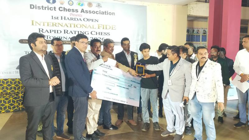 हरदा :- शतरंज के क्षेत्र में हरदा ने एक ऐतिहासिक उपलब्धि दर्ज करते हुए हरदा की प्रथम फीडर रेटेड इंटरनेशनल रैपिड शतरंज प्रतियोगिता का भव्य आयोजन 24 जनवरी 2026 को स्थानीय हरदा डिग्री कॉलेज परिसर में किया। यह अंतरराष्ट्रीय स्तर की प्रतियोगिता संरक्षक श्री सिद्धार्थ जैन, कलेक्टर हरदा के संरक्षण में सम्पन्न हुई।