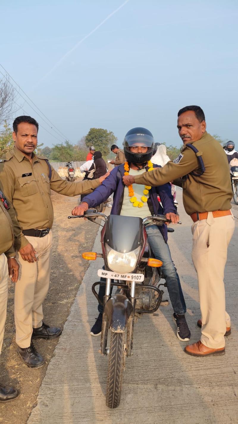 अभियान की खास बात यह रही कि हेलमेट पहनकर वाहन चलाने वाले जिम्मेदार वाहन चालकों को फूलमाला पहनाकर सम्मानित किया गया। पुलिस द्वारा इस सकारात्मक पहल के माध्यम से आमजन को यह संदेश दिया गया कि नियमों का पालन न केवल अनिवार्य है बल्कि जीवन रक्षा के लिए अत्यंत आवश्यक भी है।