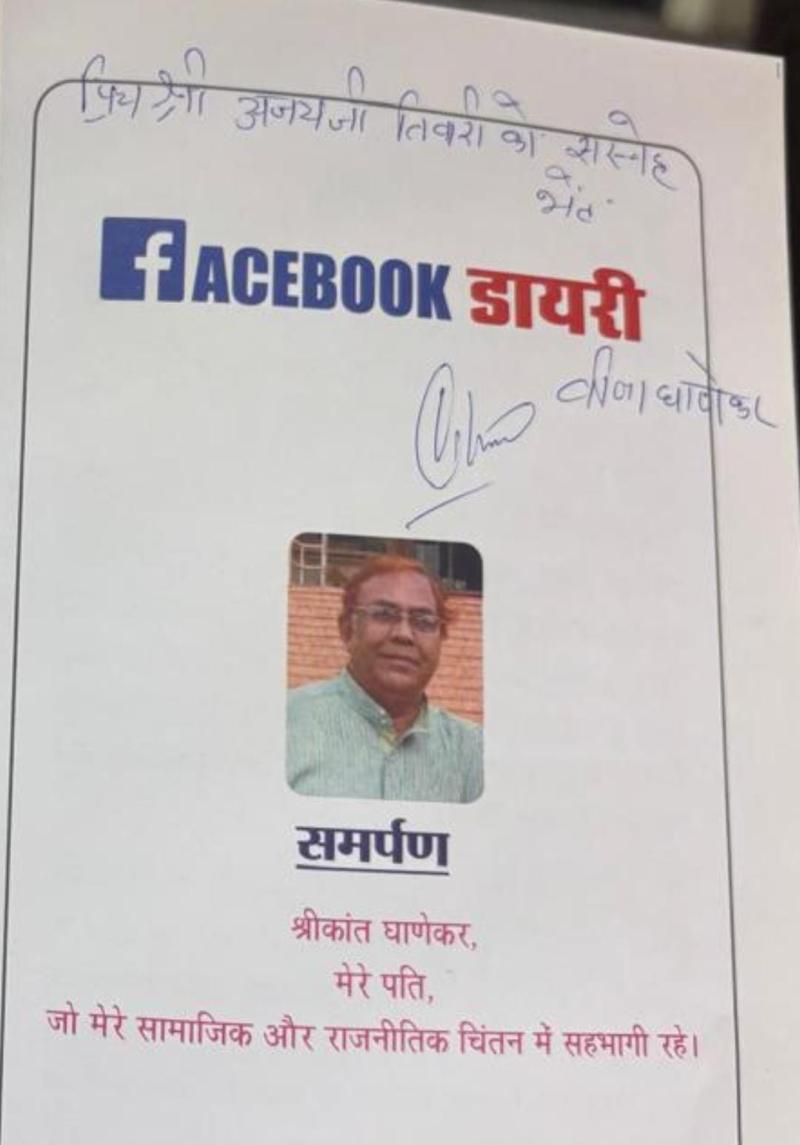 पुस्तक ‘फेसबुक डायरी’ का समर्पण उनके पति श्री श्रीकांत घाणेकर को किया गया है, जो उनके सामाजिक और राजनीतिक चिंतन के सहभागी रहे हैं।