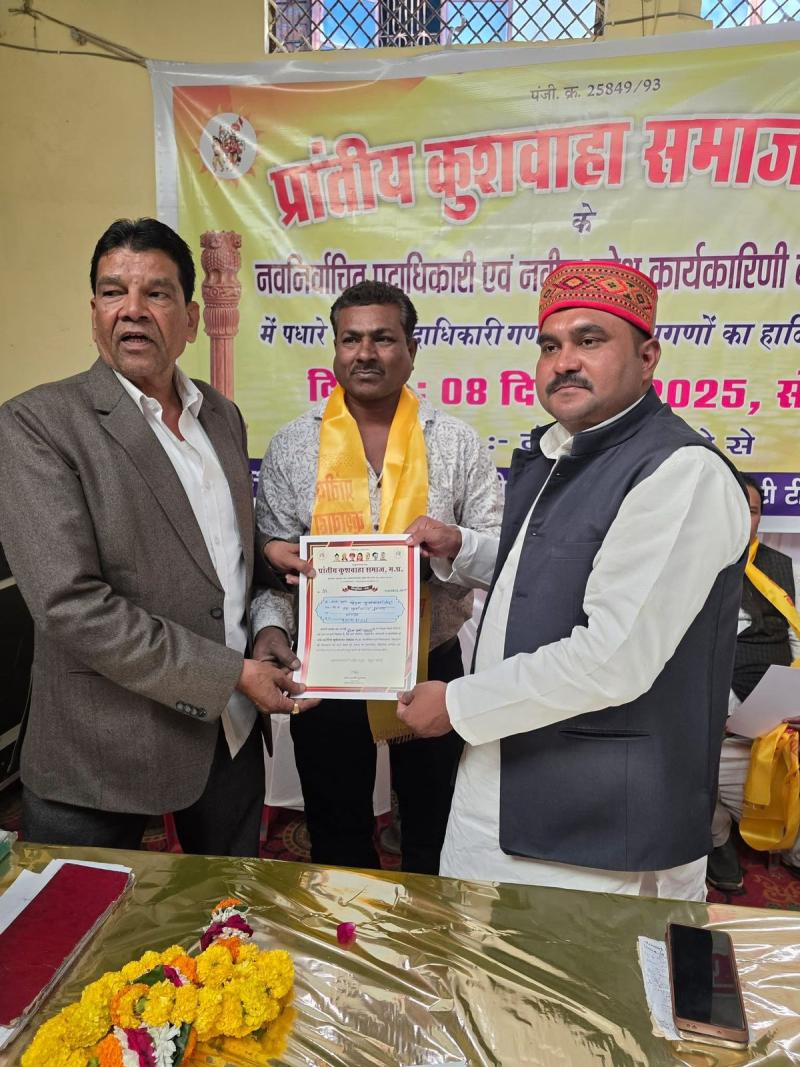 प्रांतीय कुशवाहा समाज, मध्य प्रदेश में बड़ी खुशी की लहर पुरुषोत्तम कुशवाहा बने भोपाल संभाग के महामंत्री