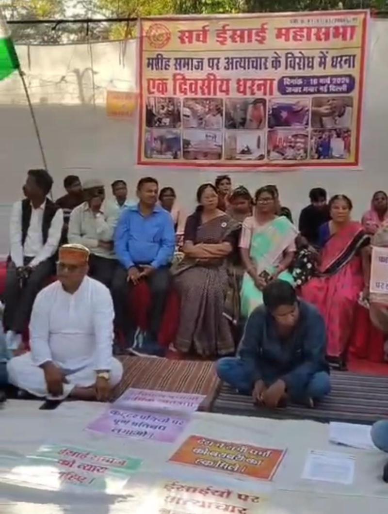 दिल्ली के जंतर-मंतर पर सर्व ईसाई महासभा के नेतृत्व में धरना-प्रदर्शन किया गया