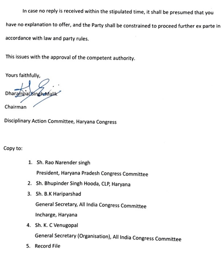 अंबाला (हरियाणा)। कांग्रेस में राज्यसभा चुनाव के दौरान क्रॉस वोटिंग का मामला गरमाता जा रहा है। प्रदेश कांग्रेस की अनुशासनात्मक समिति ने क्रॉस वोटिंग मामले में रतिया के विधायक जरनैल सिंह को कारण बताओं नोटिस जारी किया है। नोटिस में उन पर एंटी पार्टी गतिविधियों में शामिल होने का आरोप लगाया गया। इसके साथ ही आरोपी पर रतिया विधायक को 7 दिनों के भीतर जवाब देना। अभी तक क्रॉस वोटिंग के मामले में चार विधायकों का नाम सामने आया था। इसके बाद से कयास लगाए जा रहे थे कि कांग्रेस अन्य विधायकों के नाम भी खोलेगी। रतिया विधायक का नाम सामने आने के बाद प्रदेश कांग्रेस की राजनीति एक बार फिर से गर्म आ गई है। अब देखना होगा कि उनकी तरफ से क्या जवाब आता है। इसके साथ-साथ ऐसा ही कारण बताओं नोटिस नारायणगढ़ की विधायक शैली चौधरी को भी दिया गया है उनका जवाब भी अभी लंबित है।