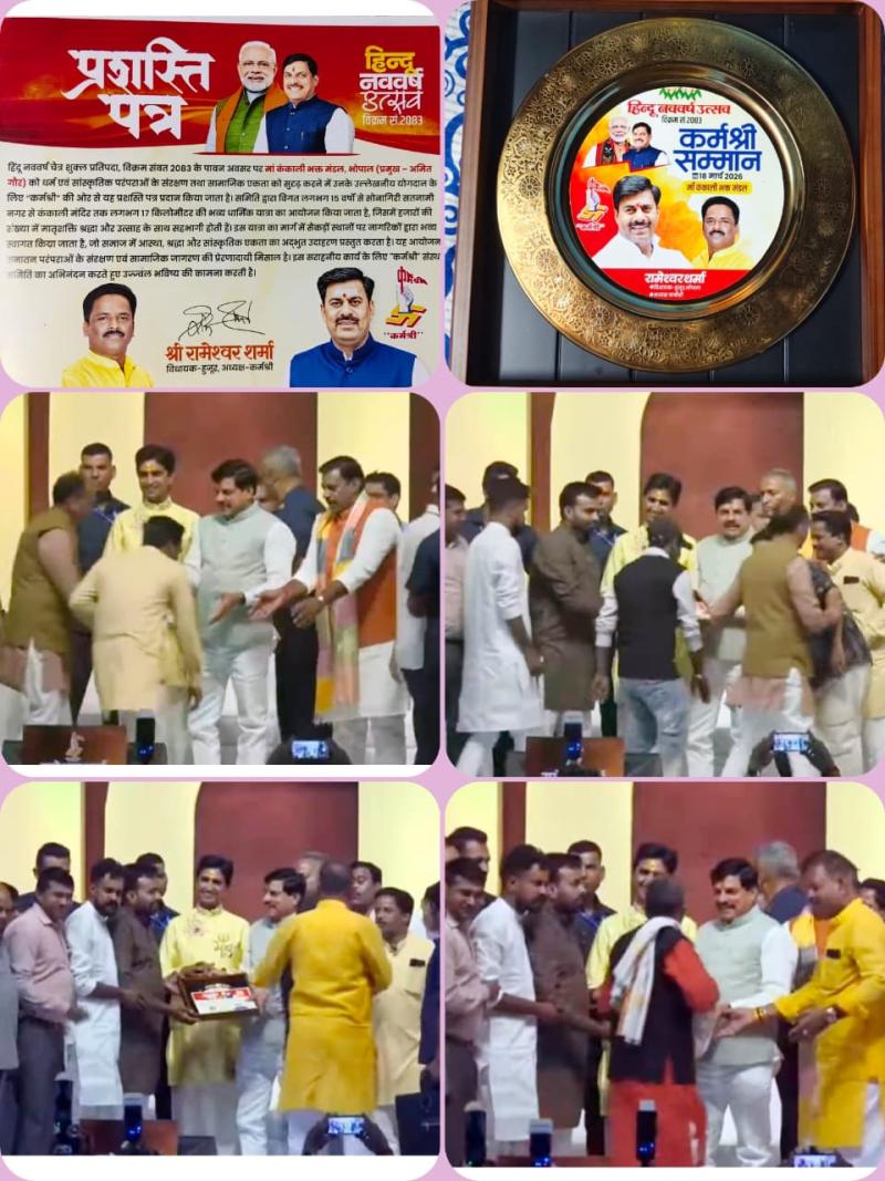 भोपाल: मां कंकाली भक्त मंडल द्वारा वर्षों से आयोजित विशाल चुनरी यात्रा के सफल आयोजन और समाज सेवा में उनके उल्लेखनीय योगदान को देखते हुए समिति के सदस्यों को सम्मानित किया गया। इस अवसर पर मध्य प्रदेश के मुख्यमंत्री श्री मोहन यादव, सुप्रसिद्ध कवि डॉ. कुमार विश्वास, और मध्य प्रदेश के लोकप्रिय विधायक व कर्म श्री संस्था के संस्थापक अध्यक्ष आदरणीय रामेश्वर शर्मा जी ने उपस्थित सदस्यों को प्रशस्ति पत्र देकर सम्मानित किया।