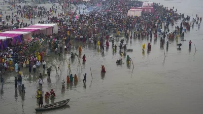 द्धालु उगते सूर्य को अर्ध्य देने पहुंचे थे