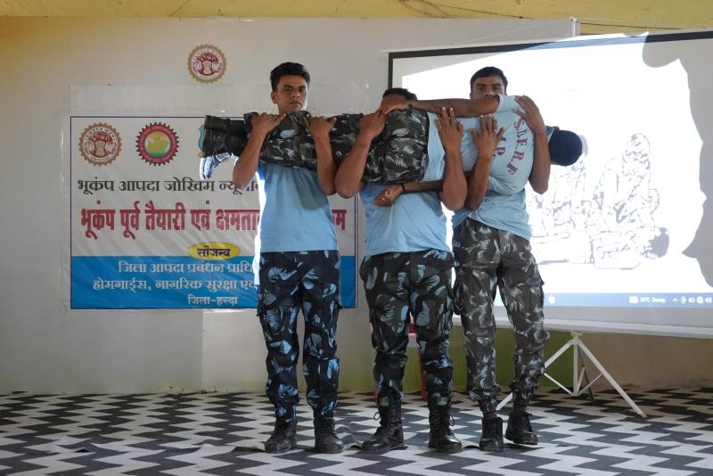 हरदा / भूकम्प पूर्व तैयारी एवं क्षमतावर्धन कार्यक्रम के तहत जिला आपदा प्रबंधन प्राधिकरण के नेतृत्व मे भूकम्प आपदा जोखिम न्यूनीकरण का एक दिवसीय प्रशिक्षण शनिवार को पालीटेक्निक कालेज हरदा मे आयोजित किया गया। प्रशिक्षण में हरदा जिले के महाविद्यालय एवं विद्यालय के लगभग 250 छात्र, छात्राओ एवं शिक्षक सम्मिलित हुये। कार्यक्रम का शुभारम्भ प्राचार्य पालीटेक्निक कालेज हरदा श्रीमती डॉक्टर अभिरूचि सिह ने किया। जिला आपदा प्रबंधन प्राधिकरण के मार्गदर्शन में भूकम्प आपदा जोखिम न्यूनीकरण का एक दिवसीय प्रशिक्षण कार्यक्रम सम्पन्न हुआ। प्लाटून कमाण्डर, होमगार्ड हरदा श्री जे.एल. कोठारी ने भूकम्प के जोखिम और भेदता का अवलोकन, भूकंप की तैयारी एवं सुरक्षा उपाय विषय पर व्याख्यान दिया। सिविल इंजीनियर श्री शिवम आर्या ने लचीला अवसंरचना और जोखिम न्यूनीकरण विषय पर व्याख्यान दिया। प्रशिक्षण में हवलदार श्री दीपक ठाकुर ने हताहतो का परिवहन एवं प्रथमोपचार पर व्याख्यान दिया। प्रशिक्षण में , प्लाटून कमाण्डर, होमगार्ड श्री जे.एल. कोठारी, हवलदार स्टोरमेन श्री दीपक ठाकुर, आरक्षक श्री कैलाश तोमर एवं होमगार्ड व एसडीईआरएफ के जवान तथा लगभग 250 छात्र, छात्रा एवं शिक्षक उपस्थित हुये।