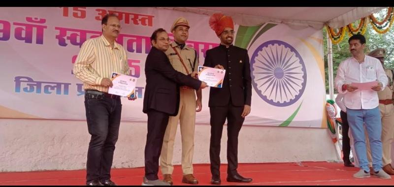 हरदा। समुदाय स्वास्थ्य केंद्र (सीएचसी) सिराली को आयुष्मान भारत योजना के सफल क्रियान्वयन के लिए शासन द्वारा सम्मानित किया गया। उक्त पुरस्कार माननीय कलेक्टर महोदय द्वारा संस्था प्रभारी डॉ. रामकृष्ण चौधरी को हरदा मिडल स्कूल मैदान में आयोजित स्वतंत्रता दिवस समारोह के दौरान प्रदान किया गया इस अवसर पर मुख्य चिकित्सा एवं स्वास्थ्य अधिकारी डॉ. एच. पी. सिंह, डॉ. रूपेंद्र गुर्जर, आयुष्मान मित्र गौतम मेहरा एवं जिला आयुष्मान समन्वयक विशाल चौहान उपस्थित रहे।