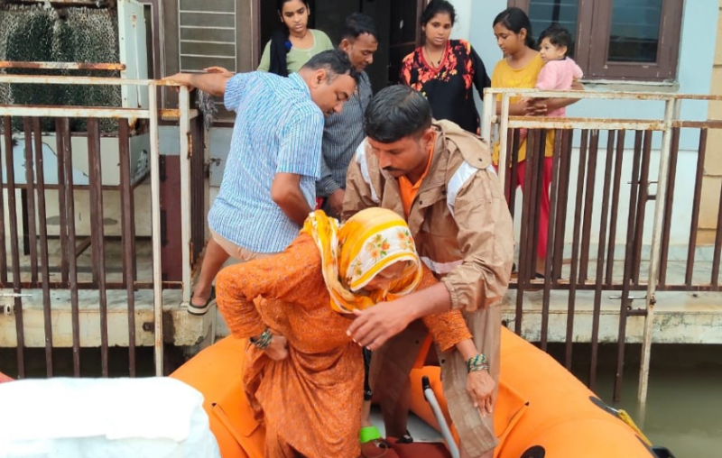 कोटा शहर में भी जल भराव वाले क्षेत्रों से एसडीआरएफ एवं प्रशासन ने लोगों को नावों की सहायता से निकालकर सुरक्षित स्थानों पर पहुंचाया।
