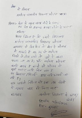 भोजन की गुणवत्ता, स्वच्छता और व्यवस्थाओं में गंभीर खामियां; सुधार नहीं हुआ तो सख्त कार्रवाई की चेतावनी मैस संचालक कंसोटियम सर्विस की मनमानी