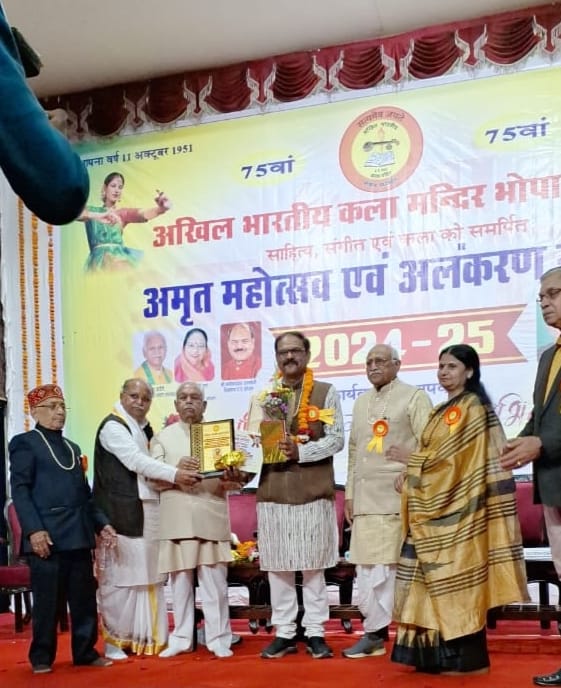 साहित्य मनीषी डॉ प्रभात पांडेय को साहित्य कला रत्न (गध) सम्मान से विभूषित किया गया उन्हें यह सम्मान उनकी कृति कहीं में बुद्ध ना हो जाऊं के लिए अखिल भारतीय कला मंदिर भोपाल द्वारा प्रदान किया गया सम्मान समारोह मानस भवन भोपाल में आयोजित किया गया जिसमें मुख्य अतिथि श्री सुरेश पचौरी पूर्व केंद्रीय मंत्री भारत सरकार अध्यक्षता डॉ रघुनंदन शर्मा पूर्व सांसद विशेष अतिथि पं विष्णु राजौरिया अध्यक्ष परशुराम कल्याण बोर्ड संस्था के अध्यक्ष श्री गौरीशंकर शर्मा गौरीश एवं कार्यकारी अध्यक्ष श्री हरि वल्लभ शर्मा द्वारा प्रदान किया गया ज्ञात हो कि डॉ प्रभात पांडेय वर्तमान में शासकीय महाविद्यालय शमशाबाद में लाइब्रेरियन के पद पर कार्यरत हैं उन्होंने १५ पुस्तकें एवं १०० से अधिक आलेख विभिन्न पत्र-पत्रिकाओं में प्रकाशित हो चुके हैं वे कई। सम्मान से नवाजे जा चुके हैं