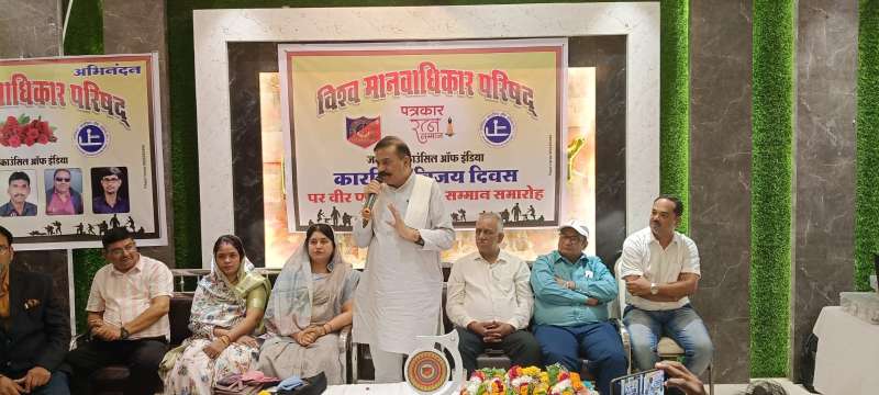 हरदा - मानव अधिकार कारगिल शहीद दिवस के अवसर पर शहीद हुए सैनिकों को नमन किया गया सभी शहीदों को श्रद्धांजलि अर्पित की गई कारगिल शहीद दिवस के अवसर पर हरदा में निजी होटल में पत्रकारों द्वारा मानव अधिकार शहीद दिवस उन शहीदों को श्रद्धांजलि अर्पित की गई जिन्होंने अपने देश के प्राण त्याग किए थे शहीद दिवस पर कार्यक्रम में शहीदों की फोटो पर माला अर्पण किया गया उन्हें श्रद्धांजलि दी गई इस मौके पर हरदा विधायक आरके दोगने, नगर पालिका अध्यक्ष भारतीय राजू कामेडीया एवं भोपाल से आए वरिष्ठ पत्रकार शामिल हुए मीडिया जगत के प्रखर राष्ट्रवादी वक्ता रविन्द्र वैष्णव ने अपने विचार व्यक्त करते हुए कहा कि पत्रकारों के लेखनी का बहुत महत्व है. पत्रकारों यह हर ध्यान रखना चाहिए कि सही बातों को प्रसारित करें भोपाल से पधारे वरिष्ठ पत्रकार विनोद सुर्यवशी सोशल मीडिया हो या प्रिंट सभी को सही बातों को प्रसारित करने की आजादी है. प्रशासन और पत्रकार दोनों जनता के हित में ही कार्य करते है. पत्रकारिता एक स्वतंत्र संस्था है. जिसका पत्रकारों के लेखनी पर बहुत महत्व है ।इस कार्यक्रम का संचालन मुईन अख्तर नारायण नामदेव के द्वारा किया गया इसमें जिले के सभी पत्रकार मौजूद रहे इस कार्यक्रम में आर दोगेने अपने विचार व्यक्त किया उन्होंने कहा कि पत्रकारों को सत्य लिखने की आजादी है उन्होंने अंग्रेजों से आजादी की लड़ाई में पत्रकारों की अहम भूमिका रही है जब अंग्रेजों द्वारा पत्रकारों की प्रिंटिंग मशीनों को जला दिया गया था तब पत्रकारों ने अपने हाथ से कागज पर लिखकर आम जनता तक अपनी आवाज पहुंचाई थी आजादी में भी पत्रकारों का बहुत बड़ा योगदान रहा है नगर पालिका अध्यक्ष भारतीय राजू कंडिया ने कहा कि पत्रकारों की मांग पर हरदा जिले में नगर पालिका परिषद द्वारा पत्रकार भवन बनाया जाएगा उन्होंने यह भी कहा कि मेरे से पहले सरकार में कार्यकाल में जो नहीं हो सका मैं अपने कर कार्यकाल में करने का वादा करती हूं हरदा के वरिष्ठ पद का विलास शर्मा ने कहा कि पत्रकारों को निष्पक्ष खबर छपना चाहिए उन्होंने कहा इस समय सोशल मीडिया इलेक्ट्रॉनिक मीडिया का दौर चल रहा है जिसमें प्रिंट मीडिया को काफी दिक्कतों का सामना करना पड़ रहा है इस पर प्रदेश की सरकार को ध्यान देना चाहिए और प्रिंट मीडिया का खर्चा बहुत अधिक होता है जिसमें प्रिंट मीडिया के पत्रकारों को आर्थिक संकट से जूझ रहे हैं उन्होंने इस समय की पत्रकारिता को दबाव पूर्ण पत्रिका पत्रकारिता की जा रही है जिसमें राजनीतिक प्रशासनिक एवं अधिकारी द्वारा ही पत्रकारों को दबाव बनाया जाता है जिससे पत्रकारिता करने में काफी दिक्कतों का सामना करना पड़ रहा है जानकारी देते हुए विश्व मानवाधिकार परिषद संगठन प्रम