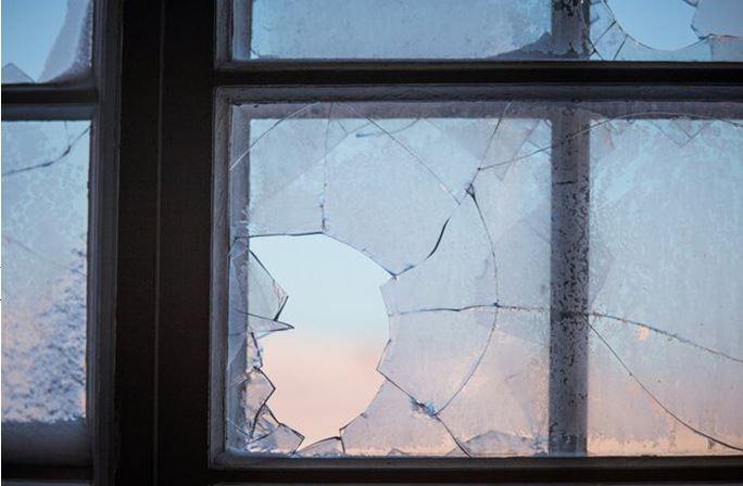 खिड़कियों के कांच टूट गए