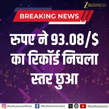 रुपये की ऐतिहासिक गिरावट: डॉलर के मुकाबले 93.08 पर पहुंचा