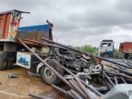 अनियंत्रित ट्रेलर पुलिया से टकराया, लोहे के पाइप गिरे; दो गंभीर