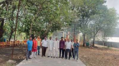 भाजपा कार्यकर्ताओं ने मुक्तिधाम में की साफ-सफाई।