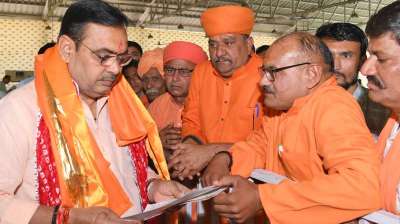 श्री शर्मा से महामण्डलेश्वर श्री मनोहरदास जी...