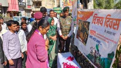 समारोहपूर्वक मनाया विजय दिवस, शहीद स्मारक पर पुष्प चक्र अर्पित किए गए