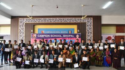 भोपाल हेडलाइंस कैम्पियन स्कूल के कक्षा बारहवीं के छात्र छात्राओं का फेयरवेल" "बीते कल की यादों व बिछुड़ने के गम...