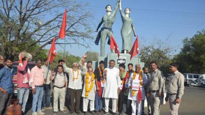 बीएचईएल गेट क्रमांक 5 पर किसानों-मजदूरों के प्रचार वाहन का स्वागत, नुक्कड़ नाटक के माध्यम से नए श्रम कानूनों के विरोध में आवाज बुलंद