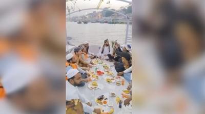 गंगा में नाव पर इफ्तारी का वीडियो वायरल, नॉनवेज खाने के आरोप