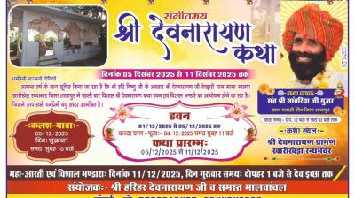खारीखेड़ा रतंभवर में पहली बार श्री देव नारायण कथा का भव्य आयोजन, 5 से 11 दिसंबर तक