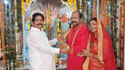 राष्ट्रीय अध्यक्ष हरिशंकर विश्वकर्मा का कैला देवी माता मंदिर में भव्य सम्मान