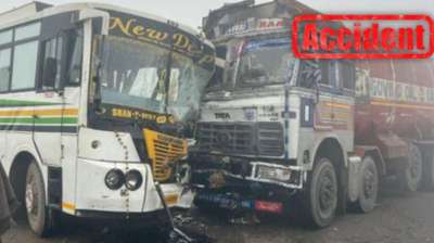 सड़क हादसा : बस और ट्रक में भीषण टक्कर; 20 से अधिक लोग घायल