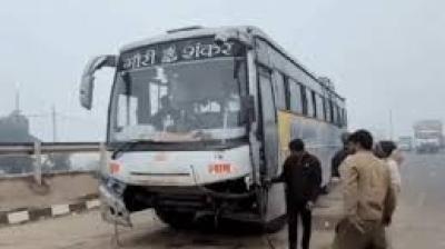 सोनीपत में हाईवे पर खड़े ट्रक से टकराई पंजाब नंबर की वॉल्वो बस